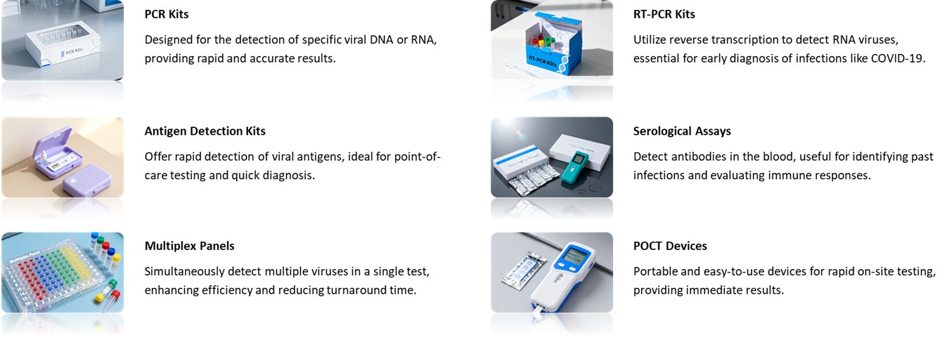 At Alta DiagnoTech, our Virus Infection IVD Products are designed to provide rapid, accurate, and reliable detection of a wide range of viral pathogens. Utilizing cutting-edge molecular techniques such as PCR and RT-PCR, our products offer high sensitivity and specificity, enabling early identification and effective management of viral infections. Whether it's common viruses like influenza or emerging threats like SARS-CoV-2, our comprehensive portfolio ensures that healthcare professionals have the tools they need to make informed decisions and improve patient outcomes.