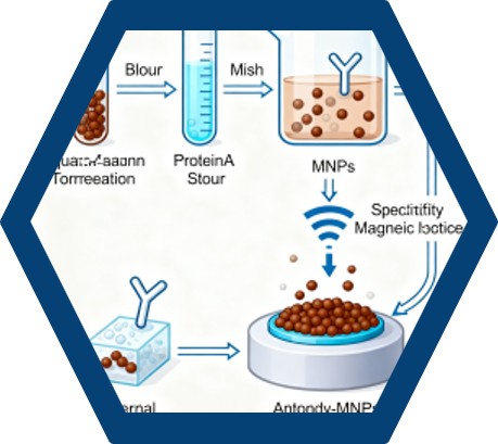 To enhance the purification process, MNPs functionalized with protein A can be employed. These MNPs provide a larger surface area for antibody binding, increasing the yield and purity of the isolated antibodies. The functionalized MNPs are mixed with the serum sample, allowing the antibodies to bind to the protein A on the MNP surface. An external magnetic field is then applied to separate the MNPs-antibody complex from the rest of the sample, followed by elution of the purified antibodies.