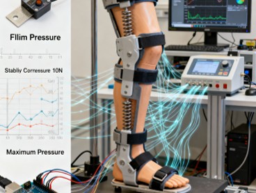 To validate the design, the researchers conducted a series of physical experiments using a pressure test system. The system consisted of thin film pressure sensors, an Arduino microcontroller, and a computer for data acquisition and analysis. The orthosis was tested on a leg model with springs of different stiffness coefficients to simulate the human leg's mechanical properties. The results showed that the orthosis could achieve stable pressure adjustments, with the ability to exert a maximum corrective pressure of 10N.